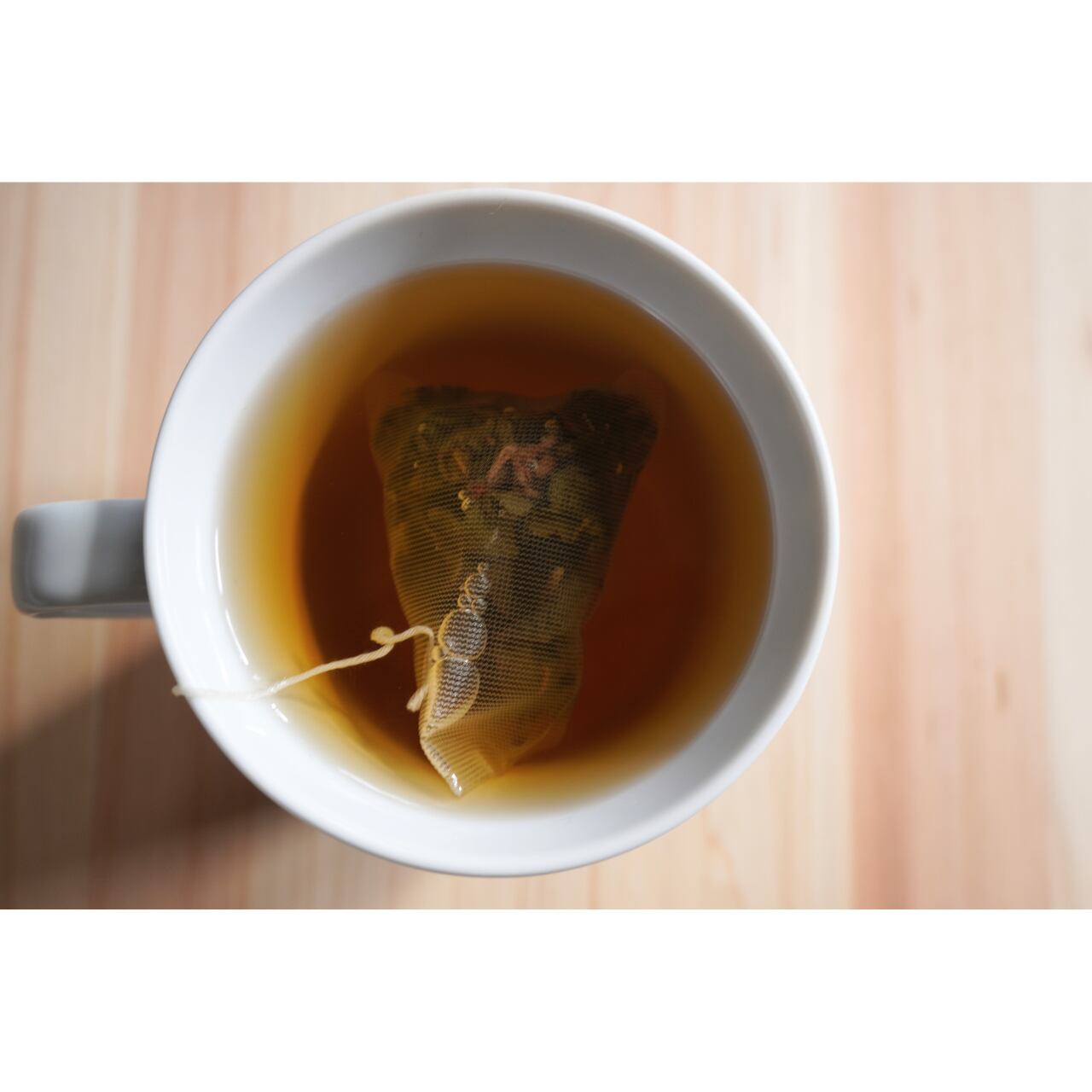 - お好きなマグカップにティーバッグを1つ入れ、約90℃のお湯を注ぎ2-3分蓋をして