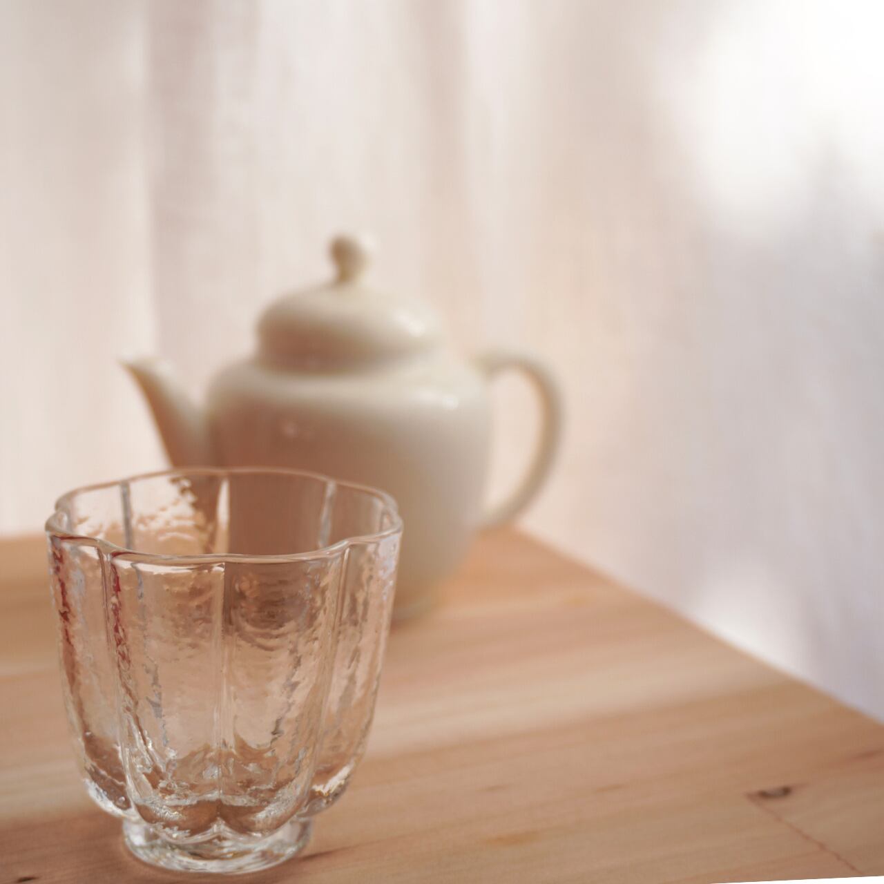 透明感のあるガラス製の茶杯「菊」は、