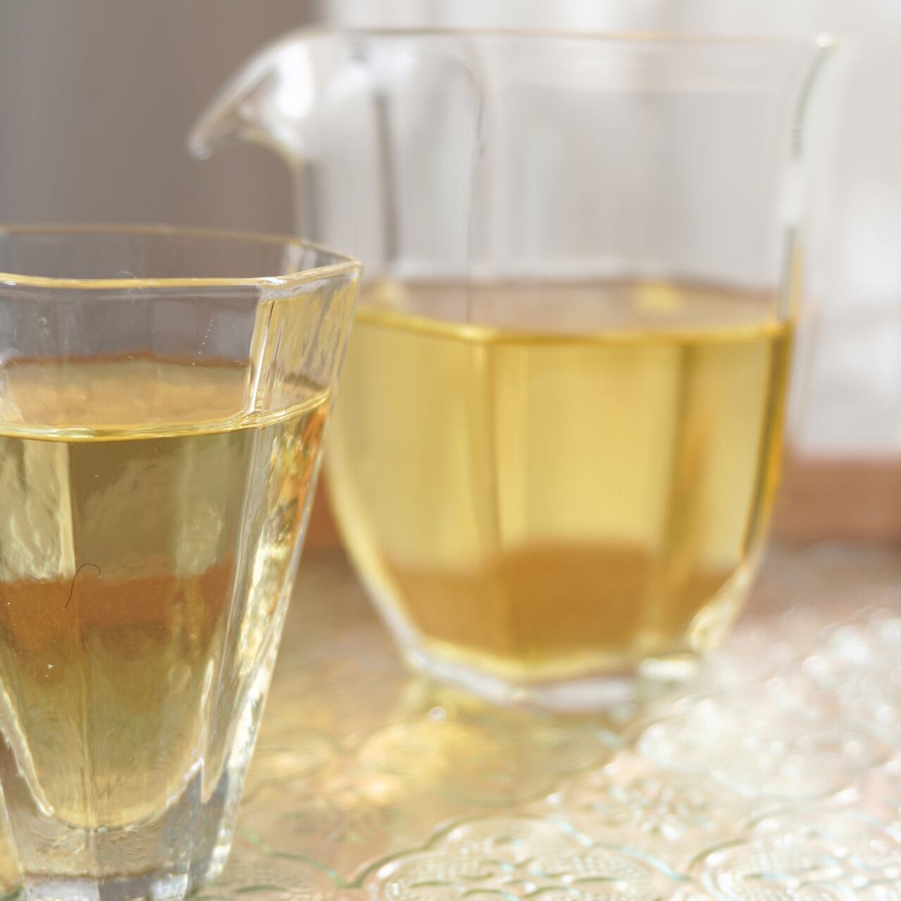 光の反射でお茶の色合いをじっくり楽しめるグラスです